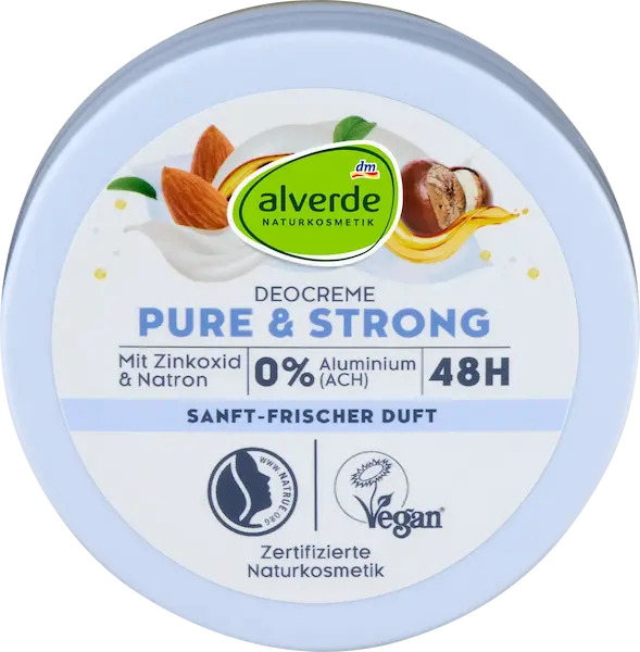 The alcohol-free formula of Alverde Deocreme Pure & Strong delivers reliable protection for up to 48 hours. Enriched with organic shea butter and organic almond oil, this certified natural cosmetic is gentle on stressed under-arm skin and even after shaving it doesn’t cause stinging. The combination of baking soda and zinc oxide works effectively against sweat decomposition and the associated odor formation.